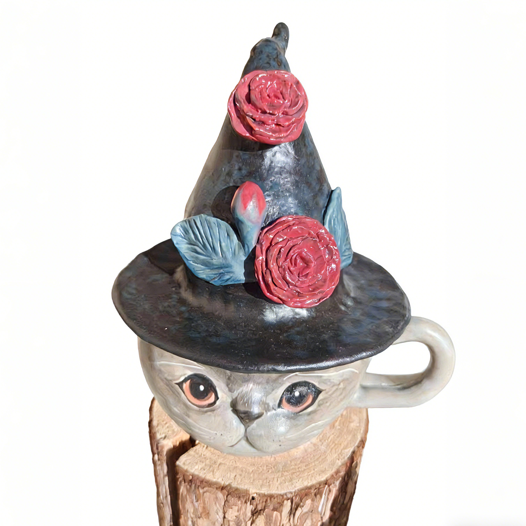 Playful yet thoughtfully crafted — this ceramic mug features an expressive cat face topped with a sculpted hat, each design telling its own small story. From whimsical witch hats to classic gentleman styles and imaginative details, every mug carries a distinct personality while maintaining a cohesive, collectible aesthetic.