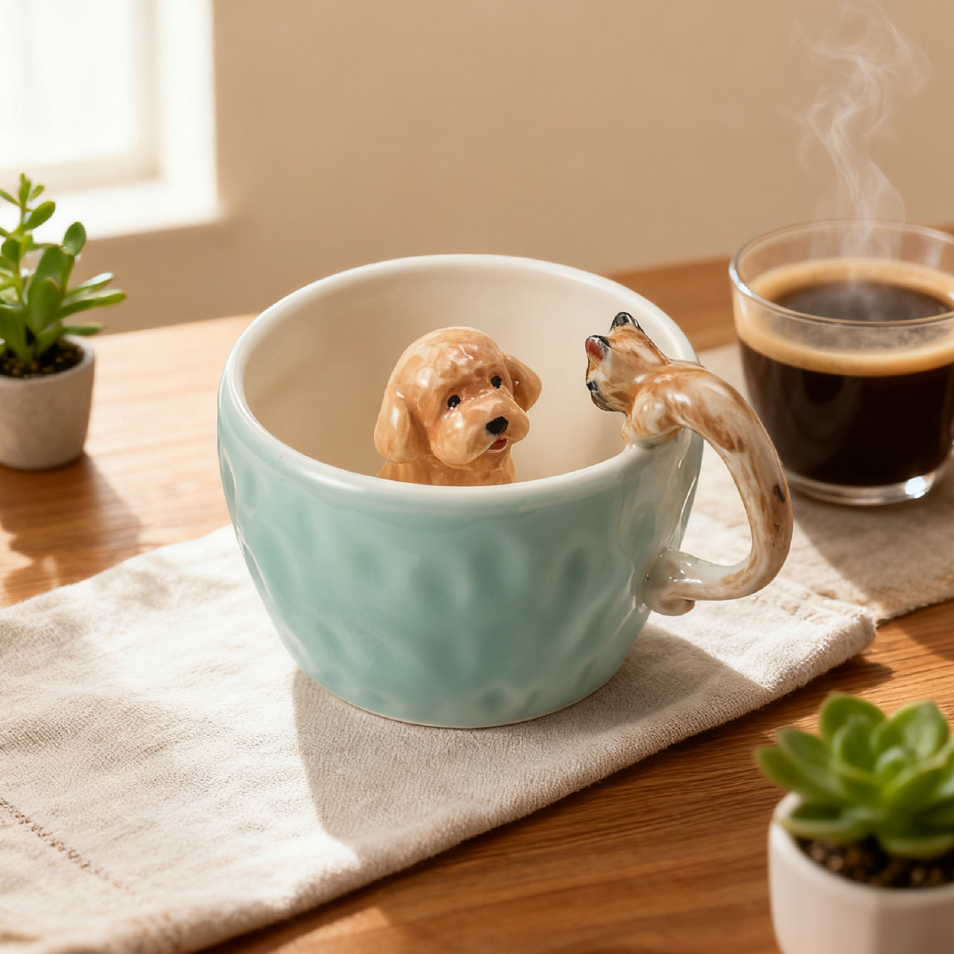 - Customised pet-themed handle – uniquely sculpted to reflect your pet’s likeness or motif, turning each mug into a mini work of art