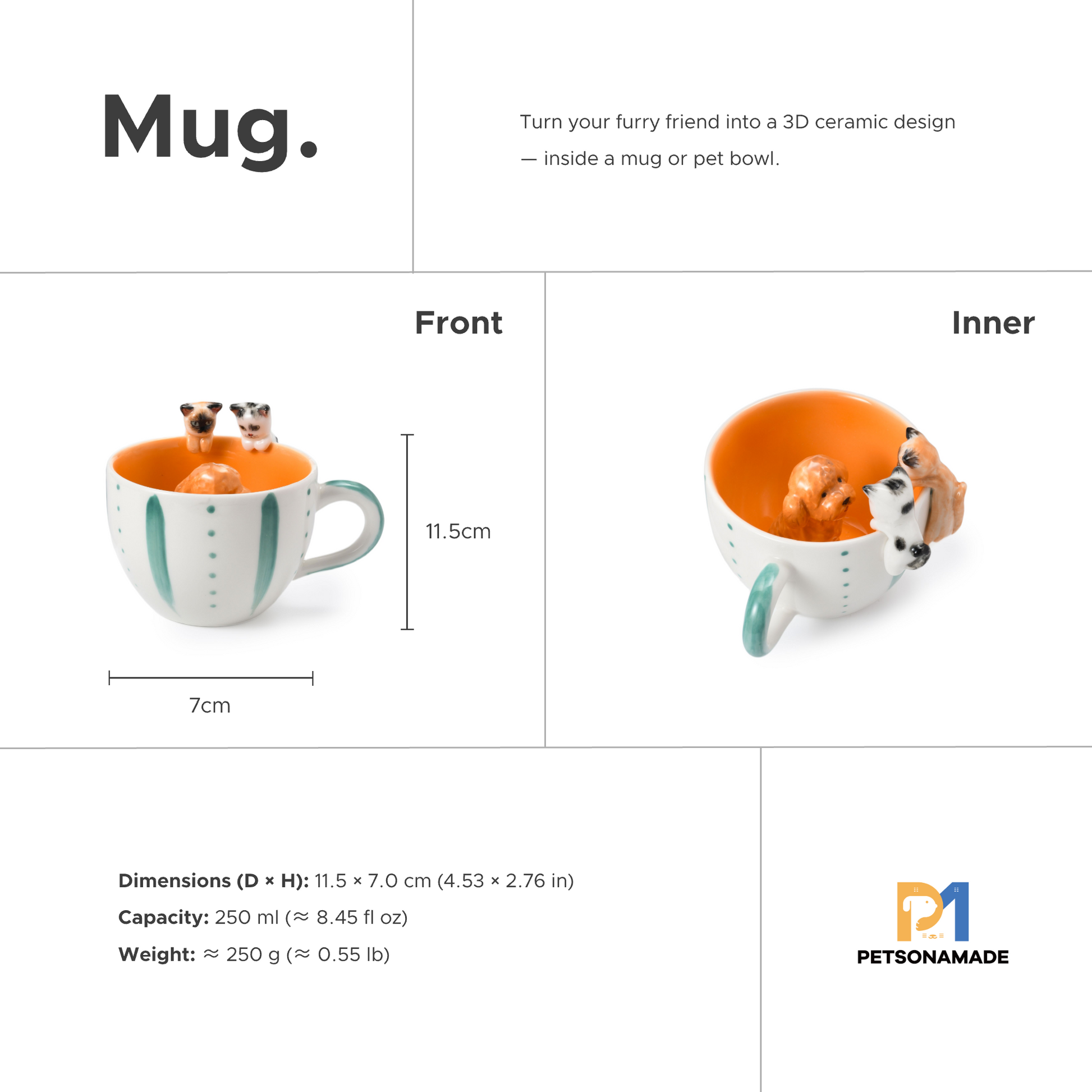 - 3D hand-painted pet portrait relief – each mug is sculpted and painted entirely by hand, capturing your pet’s lifelike expression in fine detail