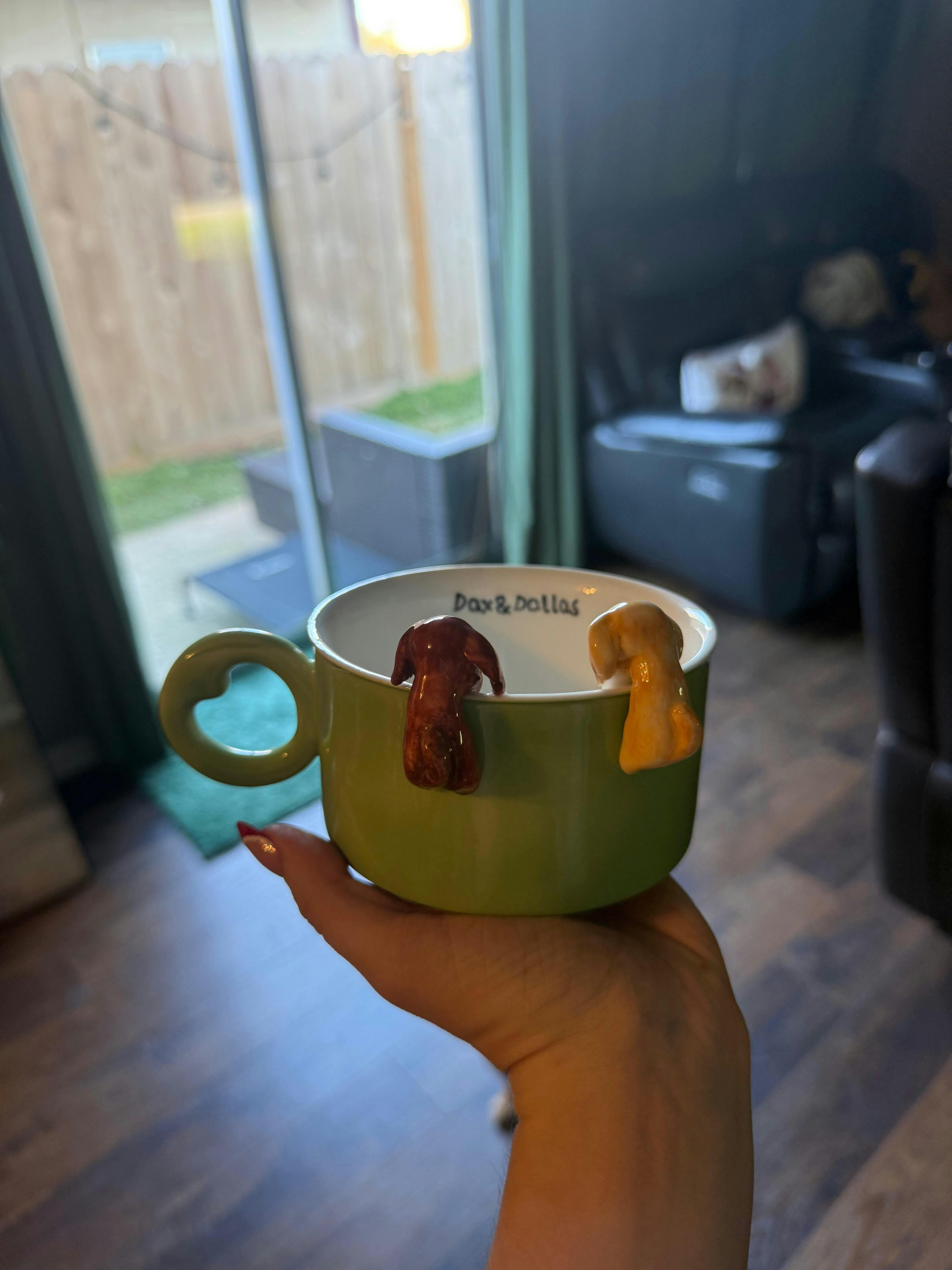 - Hanging Pose – playful and dynamic, as if your pet is joyfully clinging to the mug